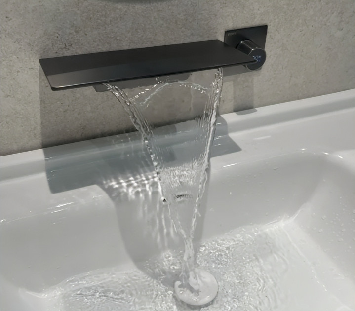 卫生间瀑布水龙头盘算看似很极简,装出来的成果也好,出水就像是瀑布相似高档。