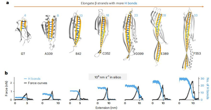 第一个测试是拉力测试,使用牵引分子能源学模拟技艺诬捏地拉扯卵白质的两头,望望到底需要多苟且气才会被拉散架,从而或然测量出来“解折叠力”(unfolding force)。