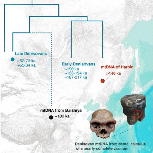 近乎完好头骨牙结石中的丹尼索瓦东说念干线粒体DNA的演化图